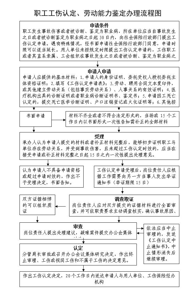定西市:工傷認定、勞動能力鑒定-辦理流程圖