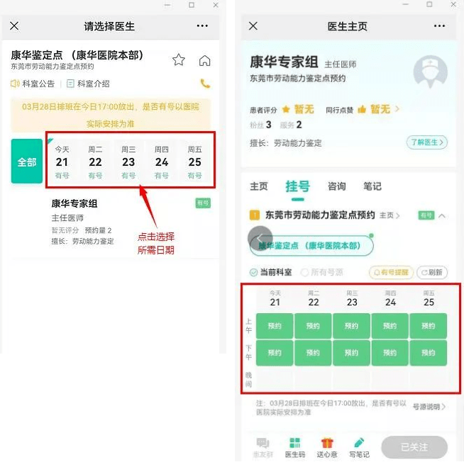 點(diǎn)擊查看大圖 知多點(diǎn) 問(wèn) 如何查詢(xún)預(yù)約記錄? 答 申請(qǐng)人可在 “個(gè)人中心”— “我的訂單”欄目下進(jìn)入 “掛號(hào)”中即可查閱。 問(wèn) 預(yù)約成功后,如何辦理鑒定通知書(shū)? 答 申請(qǐng)人在“東莞市勞動(dòng)能力鑒定點(diǎn)預(yù)約”系統(tǒng) 完成現(xiàn)場(chǎng)鑒定時(shí)間段和鑒定點(diǎn)場(chǎng)次預(yù)約后,填寫(xiě)勞動(dòng)能力鑒定《申請(qǐng)表》上的預(yù)約時(shí)間到所屬人社局經(jīng)辦窗口(或選擇網(wǎng)上申請(qǐng)、郵寄申請(qǐng)) 辦理登記, 領(lǐng)取鑒定通知書(shū)。成功預(yù)約和登記后被鑒定人即可按照預(yù)約時(shí)間段, 攜帶通知書(shū)及相關(guān)材料,合理安排出行時(shí)間參加鑒定,減少現(xiàn)場(chǎng)排隊(duì)等候時(shí)間。 提醒:申請(qǐng)人如需要提前了解各鑒定點(diǎn)預(yù)約情況,也可以通過(guò)該預(yù)約服務(wù)查閱各鑒定點(diǎn)預(yù)約情況,合理調(diào)整自己的選擇。