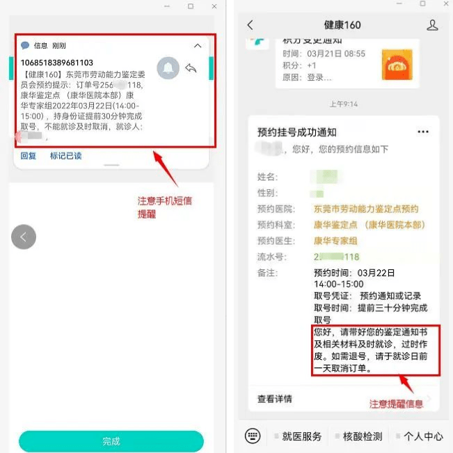 點(diǎn)擊查看大圖 (三)預(yù)約成功后,將收到手機(jī)短信通知或公眾號(hào)反饋信息