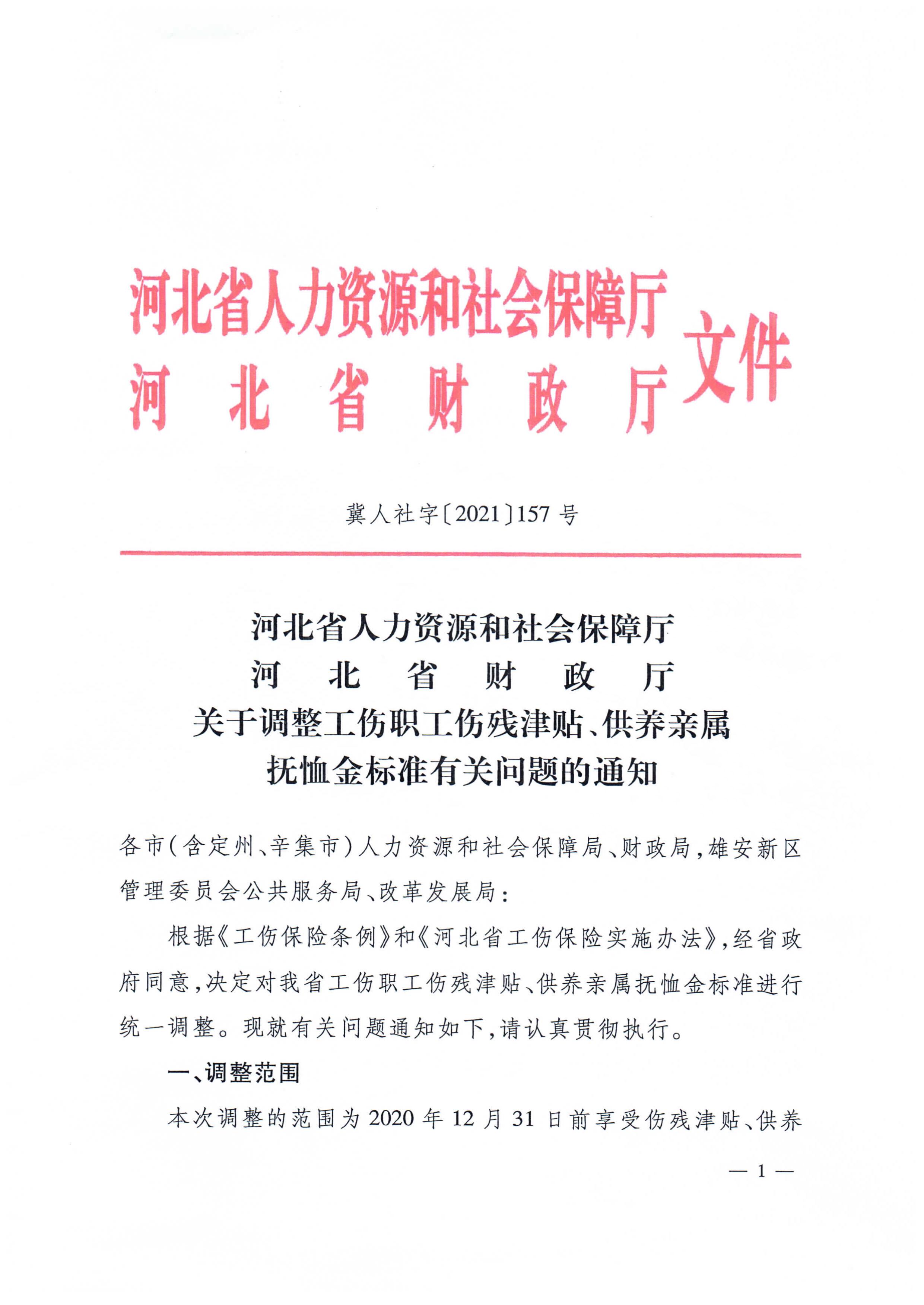 河北省關(guān)于調(diào)整工傷職工傷殘津貼、供養(yǎng)親屬撫恤金標(biāo)準(zhǔn)有關(guān)問題的通知