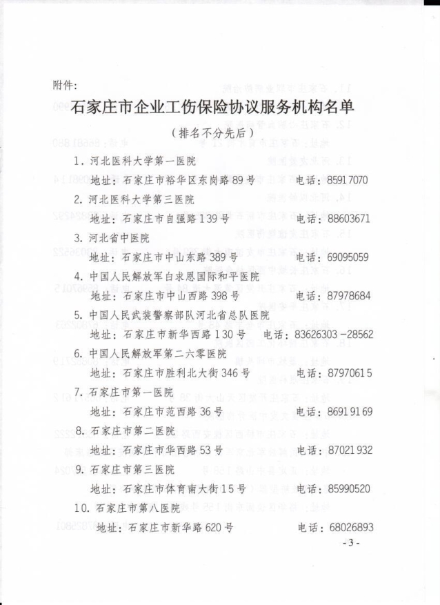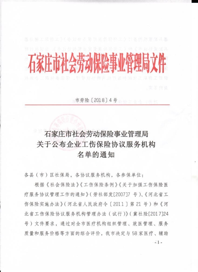 石家莊:石家莊市社會(huì)勞動(dòng)保險(xiǎn)事業(yè)管理局關(guān)于公布企業(yè)工傷保險(xiǎn)服