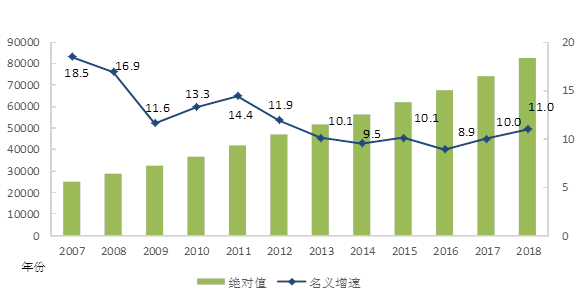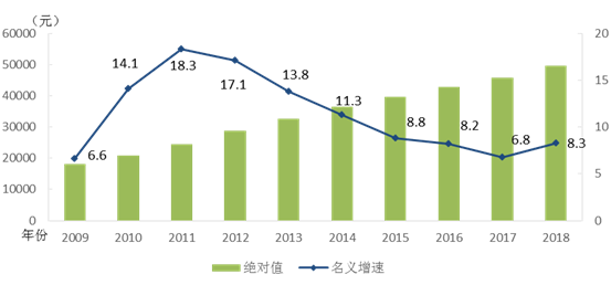 2009-2018年城鎮(zhèn)私營單位就業(yè)人員年平均工資及名義增速(圖片來源:國家統(tǒng)計局) 科研領(lǐng)域成為工資增長的另一“高地”。孟燦文認為創(chuàng)新投入力度持續(xù)加大,科技成果轉(zhuǎn)化率顯著,為科研領(lǐng)域平均工資增長創(chuàng)造了條件。數(shù)據(jù)顯示,2018年,城鎮(zhèn)非私營單位科學研究和技術(shù)服務(wù)業(yè)就業(yè)人員年平均工資增長14.4%,增幅比上年提高2.8個百分點,高于全國平均工資增幅3.4個百分點。 新動能加速成長也帶動了新業(yè)態(tài)新模式蓬勃發(fā)展,2018年實物商品網(wǎng)上零售額超過7萬億元,比上年增長25.4%,城鎮(zhèn)非私營單位批發(fā)和零售業(yè)就業(yè)人員年平均工資增長13.1%,增幅比上年提高3.7個百分點。 文化、體育、健康養(yǎng)老等社會事業(yè)持續(xù)發(fā)展,也使相關(guān)行業(yè)就業(yè)人員工資水平繼續(xù)提高。2018年城鎮(zhèn)非私營單位文化、體育和娛樂業(yè)就業(yè)人員年平均工資增長12.3%,增幅比上年提高2.4個百分點。以健康養(yǎng)老為主的社會工作行業(yè)平均工資在上年增長14.6%的基礎(chǔ)上增長了12.8%。 此外,記者注意到,2018年有近半數(shù)省份提高了最低工資標準,如廣東省從1300元漲至1550元,增長19.2%。對此,孟燦文認為最低工資標準的提高為低工資群體提供托底保障,從而在一定程度上助推了城鎮(zhèn)單位就業(yè)人員平均工資水平的增長。