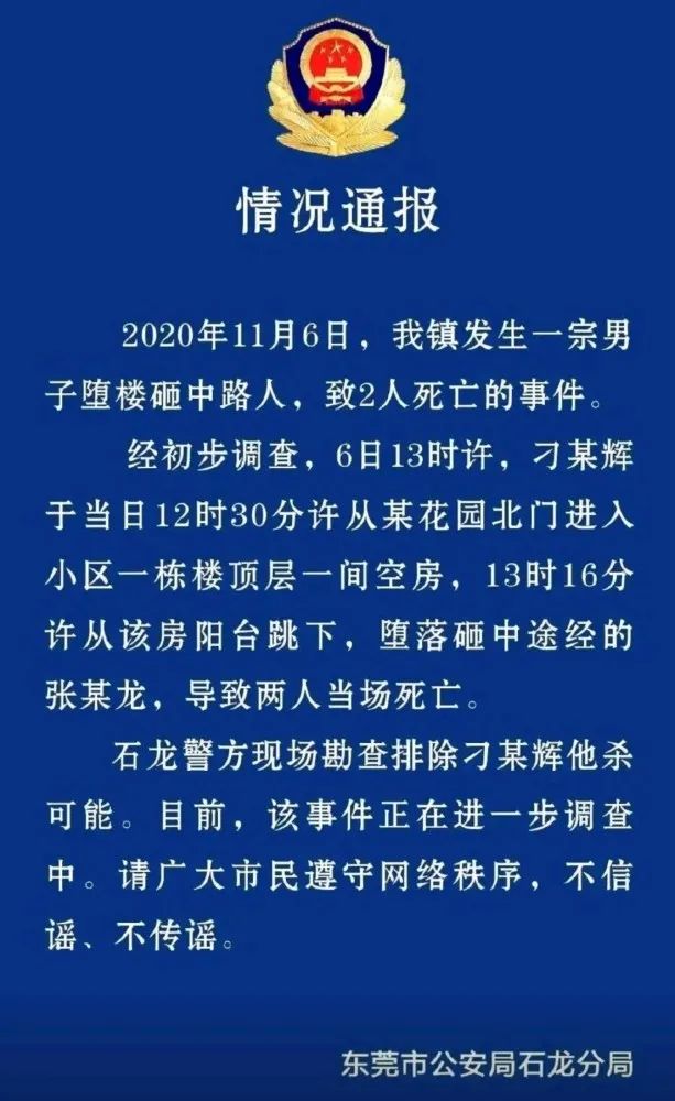 工傷賠償是怎樣的???戳此:智能AI工傷計算器幫秒算賠償! 11月6日,東莞市公安局石龍分局發(fā)布情況通報稱,當天石龍鎮(zhèn)發(fā)生一宗男子墮樓砸中路人,致2人死亡的事件。