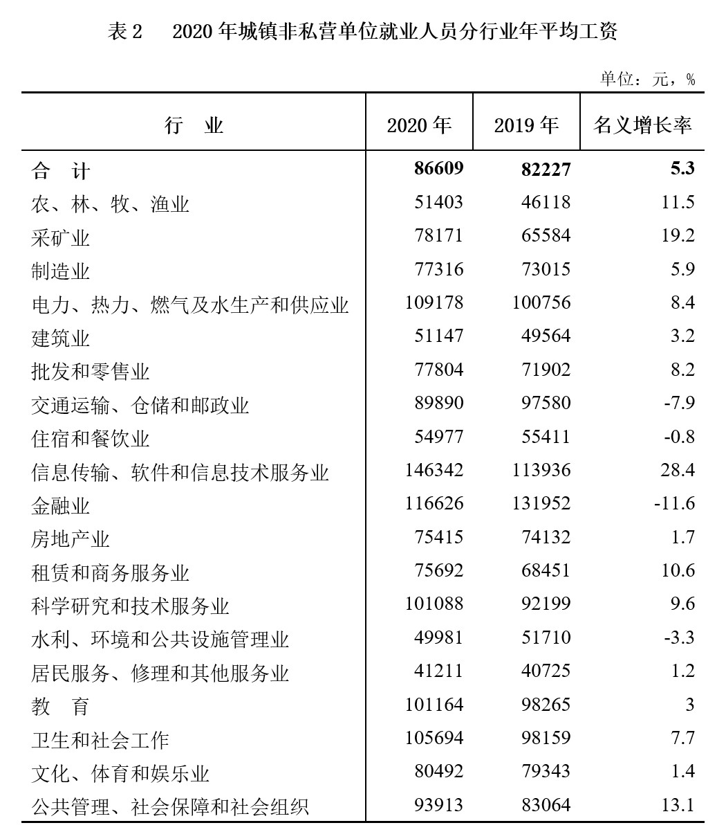 分三大區(qū)域看,2020年城鎮(zhèn)非私營(yíng)單位就業(yè)人員年平均工資由高到低依次是西部、東部和中部,分別為89084 元、86963 元和76863元;同比名義增長(zhǎng)率由高到低依次是西部6.3%、東部5.3%和中部3.9%,最高和最低區(qū)域的平均工資之比為1.16。