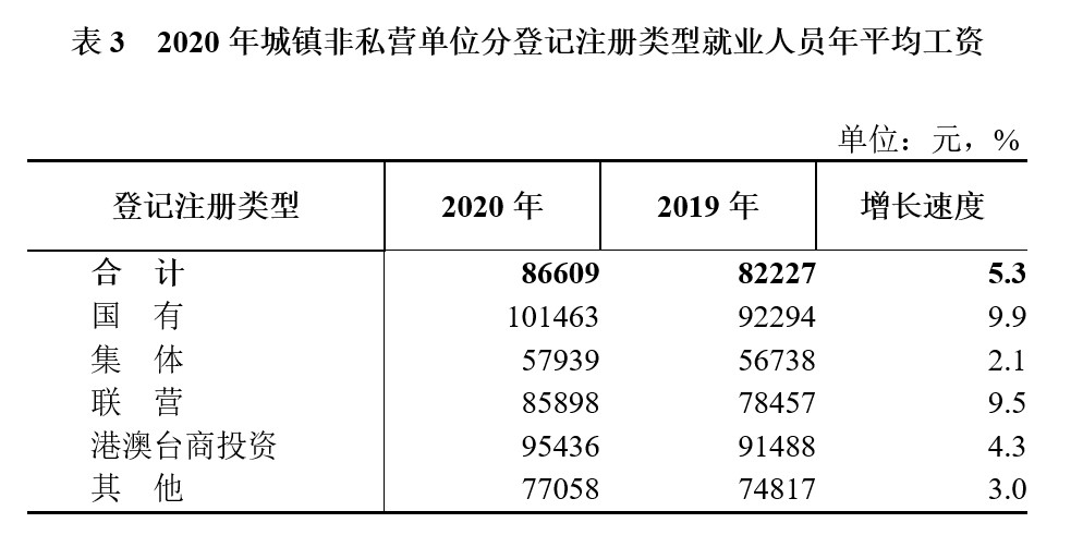 從增長(zhǎng)速度來(lái)看,年平均工資增速最高的三個(gè)行業(yè)依次為信息傳輸、軟件和信息技術(shù)服務(wù)業(yè),采礦業(yè)以及公共管理、社會(huì)保障和社會(huì)組織,增長(zhǎng)率分別為28.4%、19.2%和13.1%。全部十九個(gè)行業(yè)門(mén)類(lèi)中,有十個(gè)行業(yè)的年平均工資增速高于全省平均水平。 分登記注冊(cè)類(lèi)型看,年平均工資最高的是國(guó)有單位101463元,是全省平均水平的1.17倍;其次是港澳臺(tái)商投資單位的95436元,是全省平均水平的1.10倍;年平均工資最低的是集體單位57939元,為全省平均水平的67%。 從增長(zhǎng)速度看,國(guó)有單位年平均工資的增速最高,增長(zhǎng)9.9%;集體單位增速最低,增長(zhǎng)2.1%。除國(guó)有、聯(lián)營(yíng)單位以外,其余類(lèi)型單位的平均工資增速均低于全省平均水平。