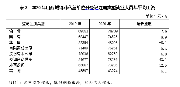 | 2020年山西省平均工資(社平工資) 2020年山西省城鎮(zhèn)非私營單位就業(yè)人員年平均工資為74739元(折合月平均工資6228元,四舍五入)。 2020年山西省在崗職工年平均工資為77364元(折合月平均工資6447元)。 2020年山西省城鎮(zhèn)私營單位就業(yè)人員年平均工資為42905元(折合月平均工資3575元)。 【注:工傷賠償標(biāo)準(zhǔn)網(wǎng)(m.michaeltmooney.com)發(fā)布的平均工資數(shù)據(jù)都為官方數(shù)據(jù)(人社局、統(tǒng)計(jì)局發(fā)布的)工友可以拿此主張工傷待遇,不像網(wǎng)絡(luò)上的瞎掰的數(shù)據(jù)非官方數(shù)據(jù)(沒用)政府相關(guān)部門不認(rèn)可不能拿來主張工傷待遇。工傷賠償標(biāo)準(zhǔn)網(wǎng)(m.michaeltmooney.com)專業(yè)工傷、專注工傷。咨詢微信:gspc12333 委托代理熱線:18818685070 深圳及其周邊地區(qū)免費(fèi)咨詢微信:gspc12333。到店免費(fèi)計(jì)算工傷賠償送禮品!地址:深圳市龍崗區(qū)龍城街道龍崗大道2002號千百年商業(yè)大廈17樓(愛聯(lián)地鐵站A出口即到)】 如您想快速知道工傷怎么賠如何賠,平臺花巨資耗費(fèi)大量人力物力財(cái)力,研發(fā)了一套智能AI工傷賠償計(jì)算系統(tǒng),超級方便實(shí)用!可直接自助幫您秒算賠償,一目了然的呈現(xiàn)你的專屬賠償使其秒懂,F(xiàn)在開始立即計(jì)算賠償吧(激動(dòng)的心顫抖的手)猛戳:立即計(jì)算(即可自助算)。 2020年山西省城鎮(zhèn)非私營單位就業(yè)人員年平均工資為74739元2020年山西省城鎮(zhèn)非私營單位就業(yè)人員年平均工資為74739元,比上年增加5188元,名義增長[1]7.5%,扣除價(jià)格因素,實(shí)際增長 4.5%。在崗職工年平均工資為77364元。