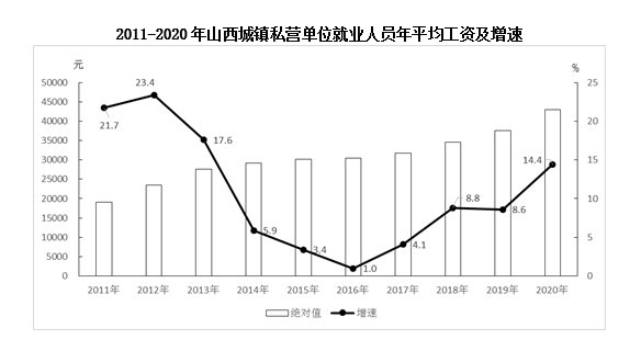 2020年山西省城鎮(zhèn)私營單位就業(yè)人員年平均工資為42905元2020年山西省城鎮(zhèn)私營單位就業(yè)人員年平均工資為42905元,比上年增加5404元,名義增長[1]14.4%,扣除價(jià)格因素,實(shí)際增長11.2%。